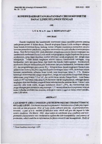 Lukman and I.Ridwansyah (2003) Kondisi daerah tangkapan dan ciri morfometri Danau Lindu Sulawesi Tengah. Oseanologi and Limnologi di Indonesia, 35. pp. 11-20. ISSN 0125-9830