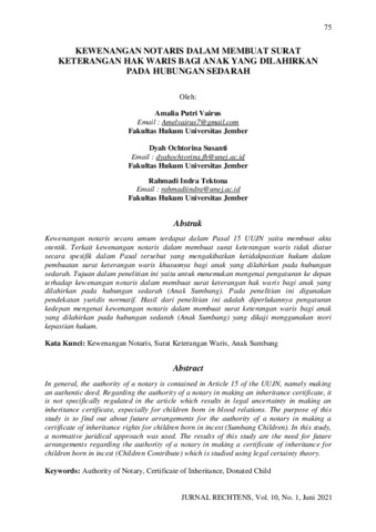 Amalia, Putri Vairus and Dyah Ochtorina, Ochtorina Susanti and Rahmadi, Indra Tektona (2021) Kewenangan notaris dalam membuat surat keterangan hak waris bagi anak yang dilahirkan pada hubungan sedarah. Jurnal Rechtens, Vol. 10, No. 1, Juni 2021 ISSN, 10 (1): 6. pp. 75-90. ISSN 1907-7114