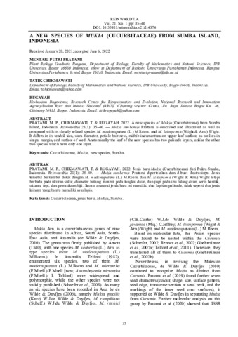 Mentari, Putri Pratami and Tatik, Chikmawati and Rugayah, - (2022) A new species of Mukia (Cucurbitaceae) from Sumba Island, Indonesia. Reinwardtia, 21 (1): 5. pp. 35-40. ISSN 0034-365X