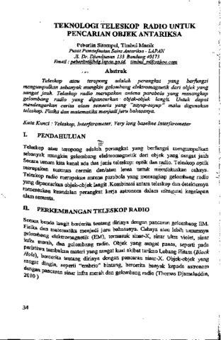 Peberlin, Sitompul and Timbul, Manik (2010) Teknologi teleskop radio untuk pencarian objek antariksa. In: Teknologi pengamatan dan informasi kedirgantaraan. Massma Sikumbang, Jakarta, pp. 34-42.