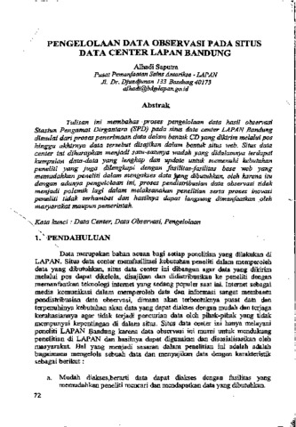| Uncontrolled Keywords: | data center, data observasi, pengelolaan |