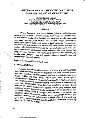 -, Elyyani and Siti, Maryam (2010) System pemantauan aktivitas client pada jaringan LAPAN Bandung. In: Teknologi Pengamatan dan Informasi Kedirgantaraan. Massma Sikumbang, Jakarta, pp. 86-93.