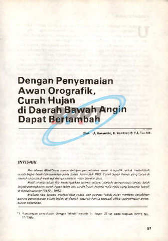 Percobaan modifikasi cuaca dengan penyemaian awan orografik untuk menambah curah hujan telah dilaksanakan pada bulan Juni—Juli 1985. Curah hujan harian yang turun di daerah sasaran dievaluasi dengan analisis statistika dan fisis. Hasil analisis statistika menunjukkan bahwa selama periode penyemaian awan, telah terjadi peningkatan curah hujan lebih dari curah hujan normal (rata-rata) yang biasanya terjadi di daerah sasaran (1970— 1981). Evaluasi fisis berupa analisis data cuaca dan gambar (citra) awan memberi keyakinan bahwa peningkatan curah hujan di daerah sasaran hanya sebagai akibat penyemaian awan, bukan kebetulan.