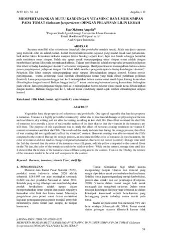 Ika, Okhtora Angelia (2022) Mempertahankan mutu kandungan vitamin C dan umur simpan pada tomat (Solanum lycopersicum) dengan pelapisan lilin lebah. Jurnal Vokasi Sains dan Teknologi, 1 (2): 7. pp. 58-61. ISSN 2808-5531