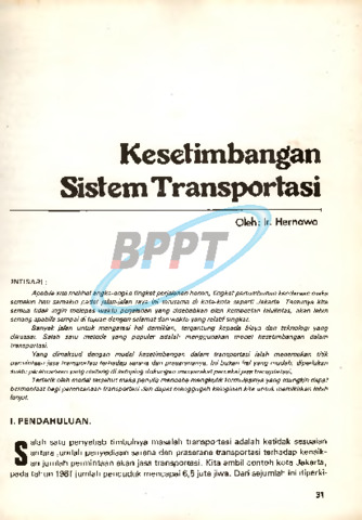 Apabila kita melihat angka-angka tingkat perjalanan harian, tingkat pertumbuhan kendaraan maka semakin hari semakin padat jalan-jalan raya ini terutama di kota-kota seperti Jakarta. Tentunya kita semua tidak ingin melepas waktu perjalanan yang disebabkan oleh kemacetan lalulintas, akan lebih senang apabila sampai di tujuan dengan selamat dan waktu yang relatif singkat. Banyak jaian untuk mengatasi hal demikian, tergantung kepada biaya dan teknologi yang dikuasai. Salah satu metode yang populer adalah menggunakan model kesetimbangan dalam transportasi. Yang dimaksud dengan model kesetimbangan dalam transportasi ialah menemukan titik permintaan jasa transportasi terhadap sarana dan prasarananya. Ini bukan hal yang mudah, diperlukan suatu perencanaan yang matang disamping dukungan masyarakat pemakai jasa transportasi. Tertarik oleh model tersebut maka penulis mencoba mengkutik formulasinya yang mungkin dapat bermanfaat bagi perencanaan transportasi dan dapat menggugah keinginan kita untuk memikirkan lebih lanjut.