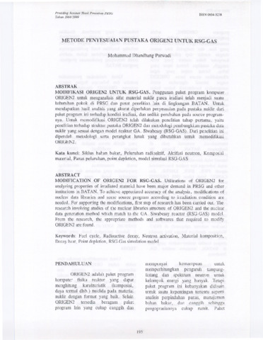 MODIFIKASI ORIGEN2 UNTUK RSG-GAS. Penggunan paket program komputer