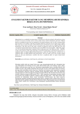 Erna, Apriliana and Dian, Novita and Ahmad, Djoko Maruti (2021) Analisis faktor-faktor yang mempengaruhi kinerja reksa dana di Indonesia. Journals of Economics and Business, 1 (1): 4. pp. 29-34. ISSN 2962-6498