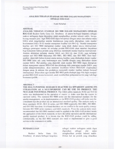 standar IAEA. Hal penting yang diperoleh ialah standar ISO 9002 dapat diterapkan