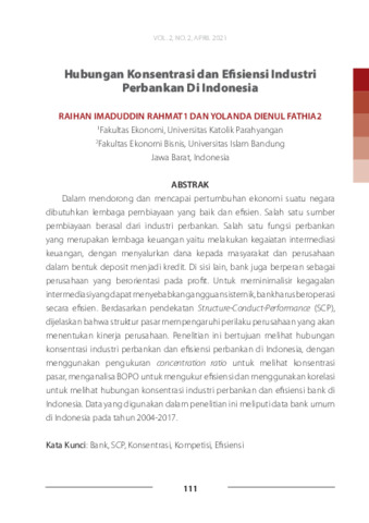 Raihan, Imaduddin Rahmat and Yolanda, Dienul Fathia (2021) Hubungan konsentrasi dan efisiensi industri perbankan di Indonesia. Buletin Riset Kebijakan Perbankan, 2 (2): 6. pp. 111-133. ISSN 2714-5794