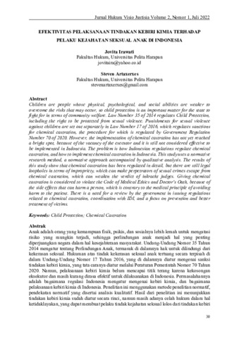 Jovita, Irawati and Steven, Artaxerxes (2022) Efektivitas pelaksanaan tindakan kebiri kimia terhadap pelaku kejahatan seksual anak di Indonesia. Jurnal Hukum Visio Justisia, 2 (1): 3. pp. 30-43. ISSN 2807-1980