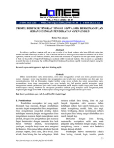 Dalam menyelesaikan suatu permasalahan, siswa akan menggunakan sebuah cara dalam penyelesaiannya namun dijumpai siswa yang kesulitan jika menggunakan cara tersebut dan membutuhkan cara lain agar bisa menyelesaikannya. Hal ini dikarenakan tingkat berfikir setiap siswa berbeda dan untuk memecahkan suatu permasalahan, siswa dapat menggunakan cara yang berbeda, dari hal tersebut peneliti terinspirasi untuk menggunakan metode pendekatan open-ended untuk mengetahui profil berpikir tingkat tinggi pada siswa SMK berkemampuan sedang. Penelitian ini merupakan penelitian kualitatif yang bertujuan untuk mengetahui profil berpikir tingkat tinggi siswa SMK berkemampuan sedang dengan menggunakan metode open-ended.