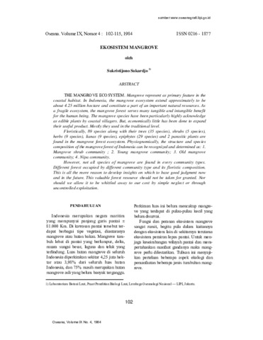 Sukristijono, Sukardjo (1984) Ekosistem Mangrove. Oseana, IX (4): -. pp. 102-115. ISSN 0216-1877