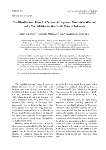Kenji, SuetSugu and Destario, Metusala and Yuda, Rehata Yudistira (2021) New distributional record of Lecanorchis nigricans Honda (Orchidaceae) and a new addition for the orchid flora of Indonesia. Acta Phytotaxonomica et Geobotanica, 72 (1). pp. 67-72. ISSN 13467565