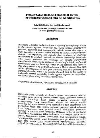 | Uncontrolled Keywords: | Identifikasi, Variabilitas, Iklim multi satelit. |