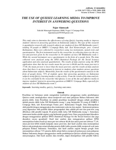 Fajar, Alamsyah (2022) The use of quizizz learning media to improve interest in answering questions. 12 Waiheru, 8 (1): 6. pp. 45-51. ISSN 2477-135X