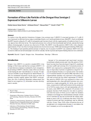 Doddy, Irawan Setyo Utomo and Ichikawa, Hirono and Tatsuya, Kato and Enoch, Y. Park (2019) Formation of virus‑like particles of the dengue virus serotype 2 expressed in silkworm larvae. Molecular Biotechnology, 61. pp. 852-859.