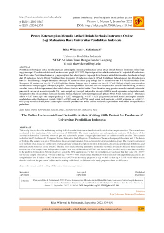 | Uncontrolled Keywords: | Prates, Keterampilan menulis artikel, Instrumen online, Mahasiswa baru |