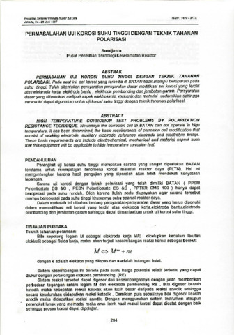 Sumijanto, Sumijanto (1997) Permasalahan uji korosi suhu tinggi dengan teknik tahanan polarisasi. Prosiding Seminar Pranata Nuklir BATAN. pp. 294-300. ISSN 1410-377X