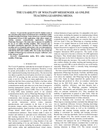 Keywords: Communication media, HCI, Online learning, Usability, WhatsApp