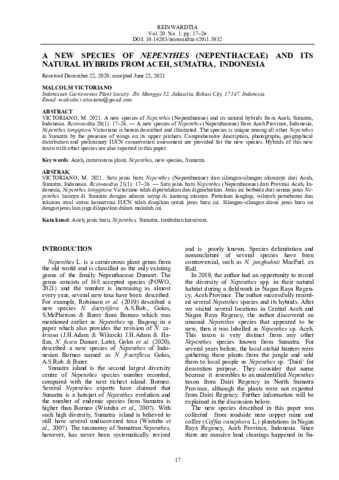 Malcolm, Victoriano (2021) A new species of nepenthes (Nepenthaceae) and its natural hybrids from Aceh, Sumatra, Indonesia. Reinwardtia, 20 (1). pp. 17-26. ISSN 0034-365X