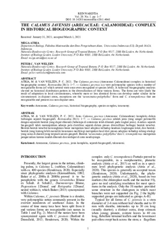 Mega, Atria and Peter, C. Van Welzen (2021) The Calamus javensis (Arecaceae: Calamoideae) complex in historical biogeographic context. Reinwardtia, 20 (1). pp. 1-7. ISSN 0034-365X