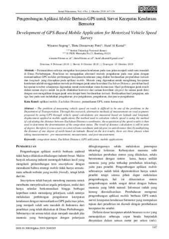 Winarno, Sugeng and Theta, Dinnarwaty Putri and Hanif, Al Kamal (2019) Pengembangan aplikasi mobile berbasis GPS untuk survei kecepatan kendaraan bermotor. Jurnal Pekommas, 4 (2): 5. pp. 147-154. ISSN 2502-1893