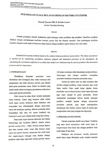 Metoda peramalan statistik berdasarkan pada hubungan antara prediktan dan prediktor. Pemilihan prediktor dilakkan dengan pertimbangan koefisien korelasi, proses fisis dan dinamis atmosfer. Dari perhitungan koefisien korelasi, ternyata curah hujan di Indonesia dapat dipakai sebagai prediktor seperti tekanan dan suhu udara.