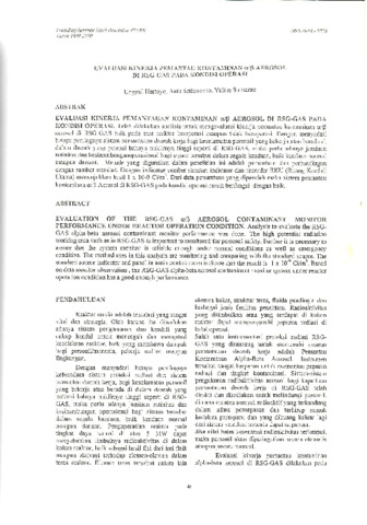 Telah dilakukan analisis untuk mengevaluasi kinerja pemantau kontaminan α/β aerosol di RSG-GAS baik pada saat reaktor beroperasi maupun tidak beroperasi. Dengan menyadari betapa pentingnya sistem pemantauan daerah kerja bagi keselamatan personil yang bekerja atau berada di dalam daerah yang potensi bahaya nuklirnya tinggi seperti di RSG-GAS. maka perlu adanya jaminan rutinitas dan kesinambungan operasional bagi sistem tersebut dalam segala keadaan, baik keadaan normal maupun darurat. Metode yang digunakan dalam penelitian ini adalah pemantuan dan perbandingan dengan sumber standart. Dengan indicator sumber standart indicator dan recorder RKU (Ruang Kendali Utama) menunjukkan hasil 1x10-9 Ci/m³ Dari data pemantuan yang diperoleh maka sistem pemantau kontaminan α/β Aerosol di RSG-GAS pada kondisi operasi masih berfungsi dengan baik.