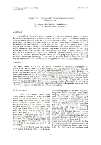Pranto Busono and Hari Sudirdjo and Hendra Prasetya (2000) Pembuatan pembuka tutup kapsul aluminium sistem rabbit. In: Prosiding seminar hasil penelitian P2TRR, Tahun 1999/2000, Jakarta.