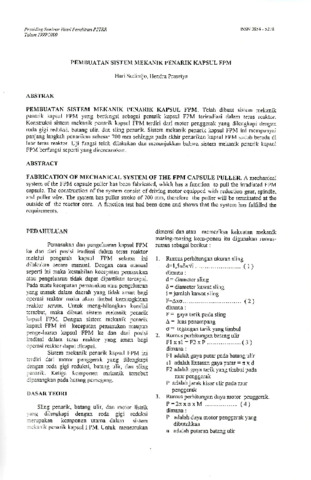 Hari Sudirdjo and Hendra Prasetya (2000) Pembuatan sistem mekanik penarik kapsul FPM. In: Prosiding seminar hasil penelitian P2TRR, 1999/2000, Jakarta.
