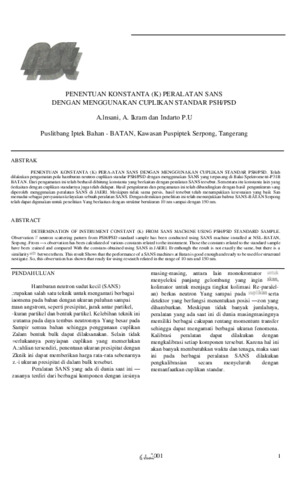 A., Insani and A., Ikram and Indarto, P.U (2001) Penentuan konstanta (K) peralatan sans dengan menggunakan cuplikan standar PSH/PSD. In: Prosiding Seminar Nasional Hamburan Neutron dan Sinar-X ke 4, 6 Juni 2001, Serpong.