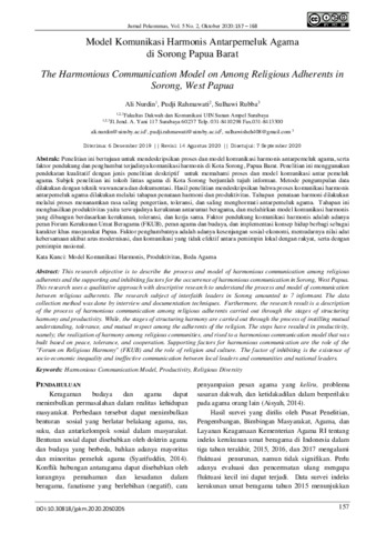 Ali, Nurdin and Pudji, Rahmawati and Sulhawi, Rubba (2020) Model komunikasi harmonis antar pemeluk agama di Sorong Papua Barat. Jurnal Pekommas, 5 (2): 5. pp. 157-168. ISSN 2502-1893