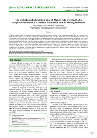 Orbicules or ubisch bodies are capable carrying specific pollen antigens which responsible for presenting allergenic activity in the atmosphere. Currently, there is no report on the orbicules and allergenic protein in African tulip tree. Thus, this research was aimed to investigate the presence of orbicules and allergenic protein in African tulip tree and to determine their potential as allergen source. The ultrastructure of orbicules were detected using Transmission Electron Microscope (TEM) and Scanning Electron Microscopy (SEM). Allergenic proteins were analyzed based on the molecular weight using SDS-PAGE. The result showed that he orbicules were present in the tapetal cells. Furthermore, the pro-orbicules were released by tapetal cells and fill the loculus before anthesis. The SDS-PAGE analysis showing several proteins with a molecular weight of 10-70 kD were detected in African tulip tree and cauld be potential as source for allergen. Protein bands with a molecular weight 55 kDa, 48 kDa, 39 kDa, and 27 kDa appear with the darkest, clearest and thickest expression of genes compared to other bands. In other species, the protein bands with molecular weight 55 kDa, 48 kDa and 27 kDa were detected as allergen. This results indicated African tulip tree could be potential for pollen allergen from ultrastructure and allergenic protein observation.