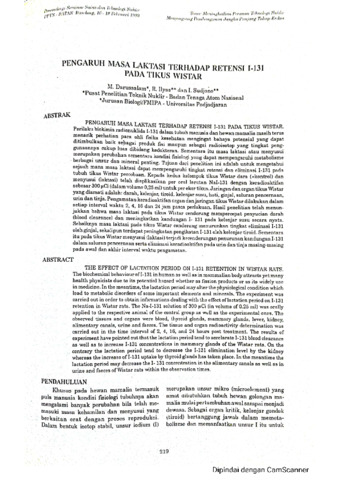 Perilaku biokimia radionuklida I-131 dalam tubuh manusia dan hewan mamalia masih terus menarik perhatian para ahli fisika kesehatan mengingat bahaya potensial yang dapat ditimbulkan baik sebagai produk fisi maupun sebagai radioisotop yang tingkat penggunaannya cukup luas dibidang kedokteran. Sementara itu masa laktasi atau menyusui menciptakan perubahan sementara kondisi fisiologi yang dapat mempengaruhi metabolisme berbagai unsur dan mineral penting. Tujuan dari penelitian ini adalah untuk mengetahui sejauh mana masa laktasi dapat mempengaruhi tingkat retensi dan eliminasi I-131 pada tubuh tikus Wistar percobaan. Kepada kedua kelompok tikus Wistar dara (=kontrol) dan menyusui (laktasi) telah diaplikasikan per oral larutan NaI-131 dengan keradioaktifan sebesar 300 μCi (dalam volume 0,25 ml) untuk per ekor tikus. Jaringan dan organ tikus Wistar yang diamati adalah: darah, kelenjar, tiroid, kelenjar susu, hati, ginjal, saluran pencernaan, urin dan tinja. Pengamatan keradioaktifan organ dan jaringan tikus Wistar dilakukan dalam setiap interval waktu 2, 4, 16 dan 24 jam pasca perlakuan. Hasil penelitian telah menunjukkan bahwa masa laktasi pada tikus Wistar cenderung mempercepat penyucian darah(blood clearance) dan meningkatkan kandungan I- 131 pada kelenjar susu secara nyata.Sebaiknya masa laktasi pada tikus Wistar cenderung menurunkan tingkat eliminasi I-131 oleh ginjal. sekalipun terdapat peningkatan pengikatan I-131 oleh kelenjar tiroid. Sementara itu pada tikus Wistar menyusui (laktasi) terjadi kecenderungan penurunan kandungan I-131 dalam saluran pencernaan serta eliminasi keradioaktifan pada unit dan tinja masing-masing pada awal dan akhir interval waktu pengamatan.