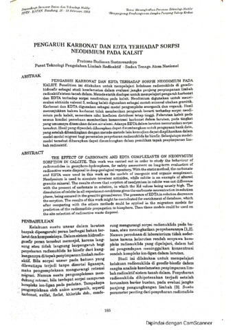 Penelitian ini dilakukan untuk mempelajari kelakuan radionuklida di geosfir-hidrosfir sebagai studi keselamatan dalam evaluasi jangka panjang penyimpanan limbah radioaktif sisten tanah dalam. Metode statik diadopsi untuk mempelajari pengaruh karbonat dan EDTA terhadap sorpsi neodimium pada kalsit. Neodimium digunakan untuk mensimulasi aktinida valensi 3, sedang kalsit digunakan sebagai contoh mineral ubahan granitik.Karbonat dan EDTA digunakan sebagai model pengompleks anorganik dan organik Hasil menunjukkan bahwa karbonat tidak memberikan pengaruh berarti terhadap sorpsi neodimium pada kalsit, sementara nilai koefisien distribusi tetap tinggi. Pelarutan kalsit pada semua kondisi percobaan memberikan konsentrasi karbonat dalam larutan, pada tingkat yang umumnya ditemukan dalam air alami. Adanya EDTA dalam larutan menurunkan sorpsi tersebut. Hasil yang diperoleh diharapkan dapat disumbangkan untuk pengayaan bank data, yang setelah dibandingkan dengan metode-metode lain kemudian dapat diaplikasikan dalam model-model migrasi bagi peramalan penyebaran radionuklida ke biosfir. Selanjutnya model-model tersebut diharapkan dapat disumbangkan dalam pemilihan tapak penyimpanan limbah radioaktif.
