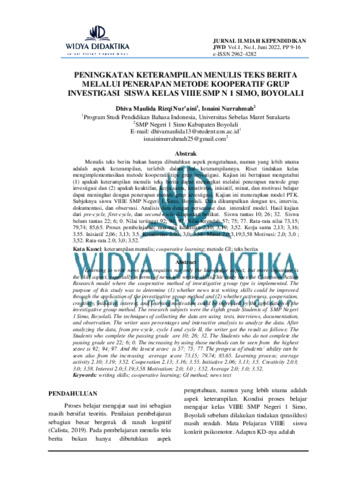 Menulis teks berita bukan hanya dibutuhkan aspek pengetahuan, namun yang lebih utama adalah aspek keterampilan, terlebih dalam hal keterampilannya. Riset tindakan kelas mengimplementasikan metode kooperatif tipe grup investigasi. Kajian ini bertujuan mengetahui (1) apakah keterampilan menulis teks berita dapat meningkat melalui penerapan metode grup investigasi dan (2) apakah keaktifan, kerja sama, kreativitas, inisiatif, minat, dan motivasi belajar dapat meningkat dengan penerapan metode grup investigasi. Kajian ini menerapkan model PTK. Subjeknya siswa VIIIE SMP Negeri 1 Simo, Boyolali. Data dikumpulkan dengan tes, interviu, dokumentasi, dan observasi. Analisis data dengan persentase dan interaktif model. Hasil kajian dari pre-cycle, first-cycle, dan second-cycle dilaporkan berikut. Siswa tuntas 10; 26; 32. Siswa belum tuntas 22; 6; 0. Nilai tertinggi 92; 94; 97. Nilai terendah 57; 75; 77. Rata-rata nilai 73,15; 79,74; 85,65. Proses pembelajaran; rata-rata keaktifan 2,10; 3,19; 3,52. Kerja sama 2,13; 3,16; 3.55. Inisiatif 2,06; 3,13; 3.5. Kreativitas 2,03; 3,0; 3.58. Minat 2,0;3,19;3,58 Motivasi: 2,0; 3,0 ; 3,52. Rata-rata 2.0; 3,0; 3.52.