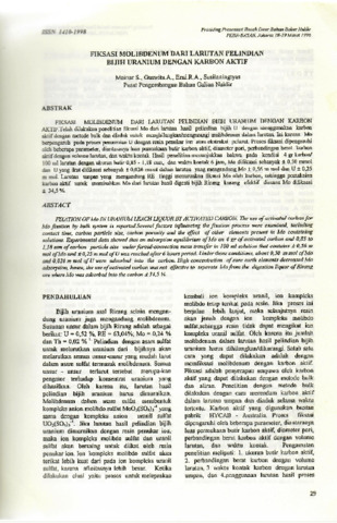 Mainar, S and Guswita, Alwi and Erni, R.A and Susilaningtyas, Susilaningtyas (1996) Fiksasi molibdenum dari larutan pelindian bijih uranium dengan karbon aktif. In: Presentasi Ilmiah Daur Bahan Bakar Nuklir, 18-19 Maret 1996, Jakarta.