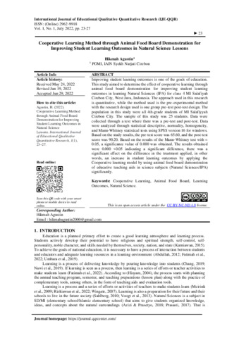 Hikmah, Agustin (2022) Cooperative learning method through animal food board demonstration for improving student learning outcomes in natural science lessons. International Journal of Educational Qualitative Quantitative Research (IJE-QQR), 1 (1): 4. pp. 23-27. ISSN 2962-9918