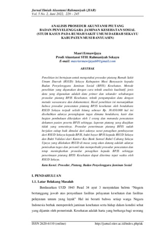 Masri, Ermawijaya (2022) Analisis prosedur akuntansi piutang badan penyelenggara jaminan kesehatan sosial (studi kasus pada Rumah Sakit Umum Daerah Sekayu Kabupaten Musi Banyuasin). Jurnal Ilmiah Akuntansi Rahmaniyah, 5 (2): 9. pp. 229-245. ISSN 2620-6110