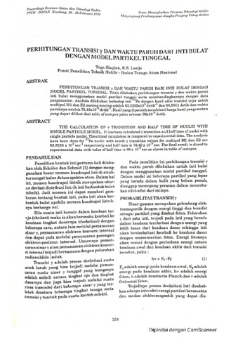 Toga, Siagian and R., S. Lasijo (1993) Perhitungan transisi γ dan waktu paruh dari inti bulat dengan model partikel tunggal. In: Proceedings Seminar Sains dan Teknologi Nuklir PPTN-BATAN Bandung, 16 - 18 Februari 1993, 16 - 18 Februari 1993, Bandung.