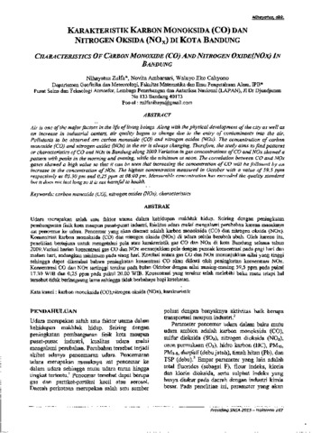 Nihayatuz, Zulfa and Novita, Ambarsari and Waluyo, Eko Cahyono (2015) Karakteristik karbon monoksida (CO) dan nitrogen oksida (NOx) di kota Bandung. In: Seminar Nasional Sains Atmosfer 2015, Bandung.