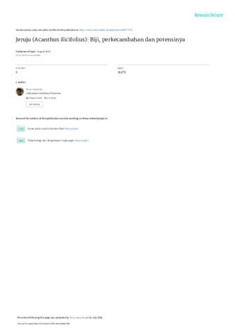 Rony, Irawanto and Esti, Endah Ariyanti and R, Hendrian (2015) Jeruju (Acanthus ilicifolius): biji, perkecambahan dan potensinya. In: Seminar Nasionam Masyarakat Biodiversitas Indonesia, 13 Juni 2015, Bogor.