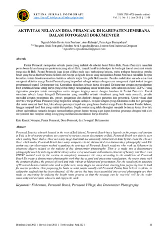 Ngurah, Made Kevin Aria Perdana and Anis, Raharjo and Putu, Agus Bratayadnya (2021) Aktivitas nelayan Desa Perancak di Kabupaten Jembrana dalam fotografi dokumenter. Retina Jurnal Fotografi, 1 (1): 2. pp. 11-19. ISSN 2798-4729