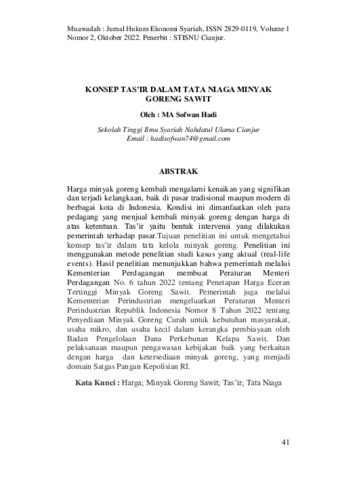 MA Sofwan Hadi (2022) Konsep tas’ir dalam tata niaga minyak goreng sawit. Muawadah: Jurnal Hukum Ekonomi Syariah, 1 (2): 2. pp. 41-68. ISSN 2829-0119