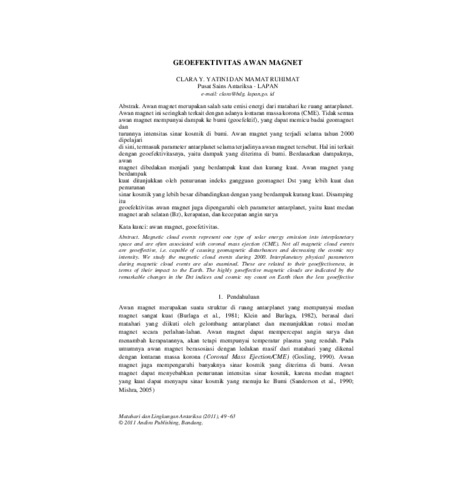 | Uncontrolled Keywords: | Awan magnet, Geoefektivitas |