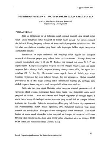 Ami A. Meuti and Estriana Ariestanti (2000) Penyisihan senyawa nitrogen di dalam lahan basah buatan. Laporan Teknik. pp. 80-98.