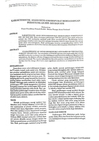 Muhayatun (1995) Karakteristik asam orto-iodohipurat berdasarkan perhitungan PPP- MO dan MM. Proceedings Seminar Sains dan Teknologi Nuklir PPTN-BATAN, 21-22 Maret 1995, Bandung.. pp. 161-163.