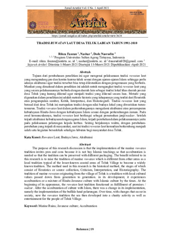 Rikza Fauzan and Nashar and Dede Nasrudin (2021) Tradisi ruwatan laut Desa Teluk Labuan tahun 1992-2010. Jurnal Artefak, 8 (1). pp. 19-26. ISSN 2355-5726