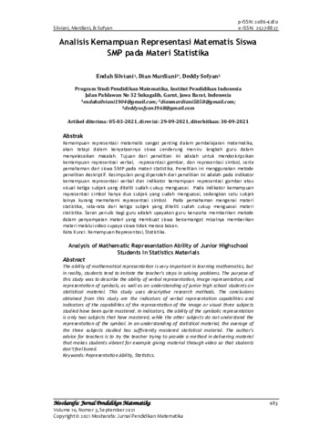 | Uncontrolled Keywords: | Kemampuan representasi, Statistika |