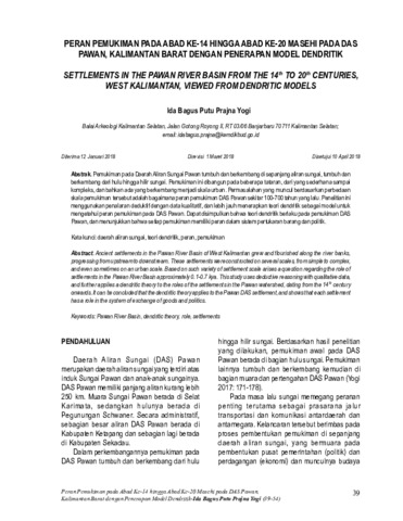 Ida Bagus Putu Prajna Yogi (2018) Peran pemukiman pada Abad ke-14 hingga Abad ke-20 Masehi pada DAS Pawan, Kalimantan Barat dengan penerapan model dendritik. Naditira Widya, 12 (1): 3. pp. 39-54. ISSN 1410-0932